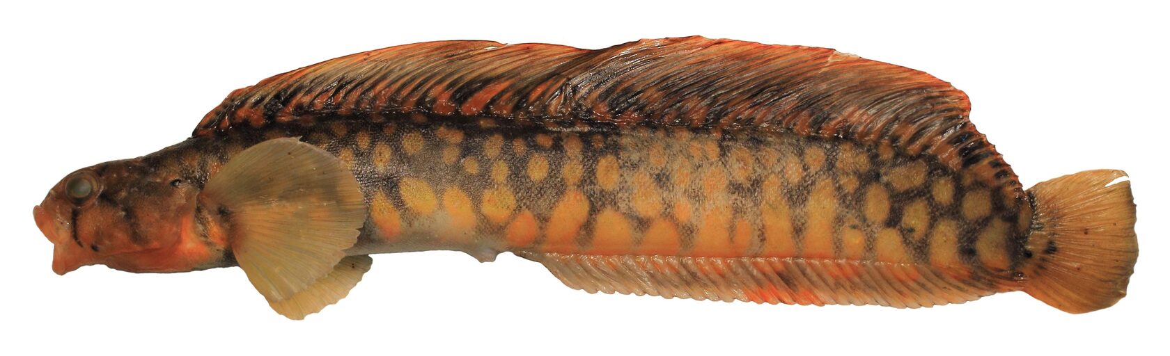 Характерные признаки. Тело умеренной длины. Спинной плавник длинный, состоит только из колючих лучей, высота которых больше или равна половине высоты тела. Рыло и голова короткие. Брюшные плавники отсутствуют. Окраска живых экземпляров красновато-серая, на боках сетчатые серые пятна. На спинном плавнике 5−6 глазчатых пятен, их диаметр больше диаметра глаза. Глаз пересекает бурая полоска, направляющаяся от затылка к подбородку, аналогичная полоска отходит от заднего края глаза к углу крышечной кости.