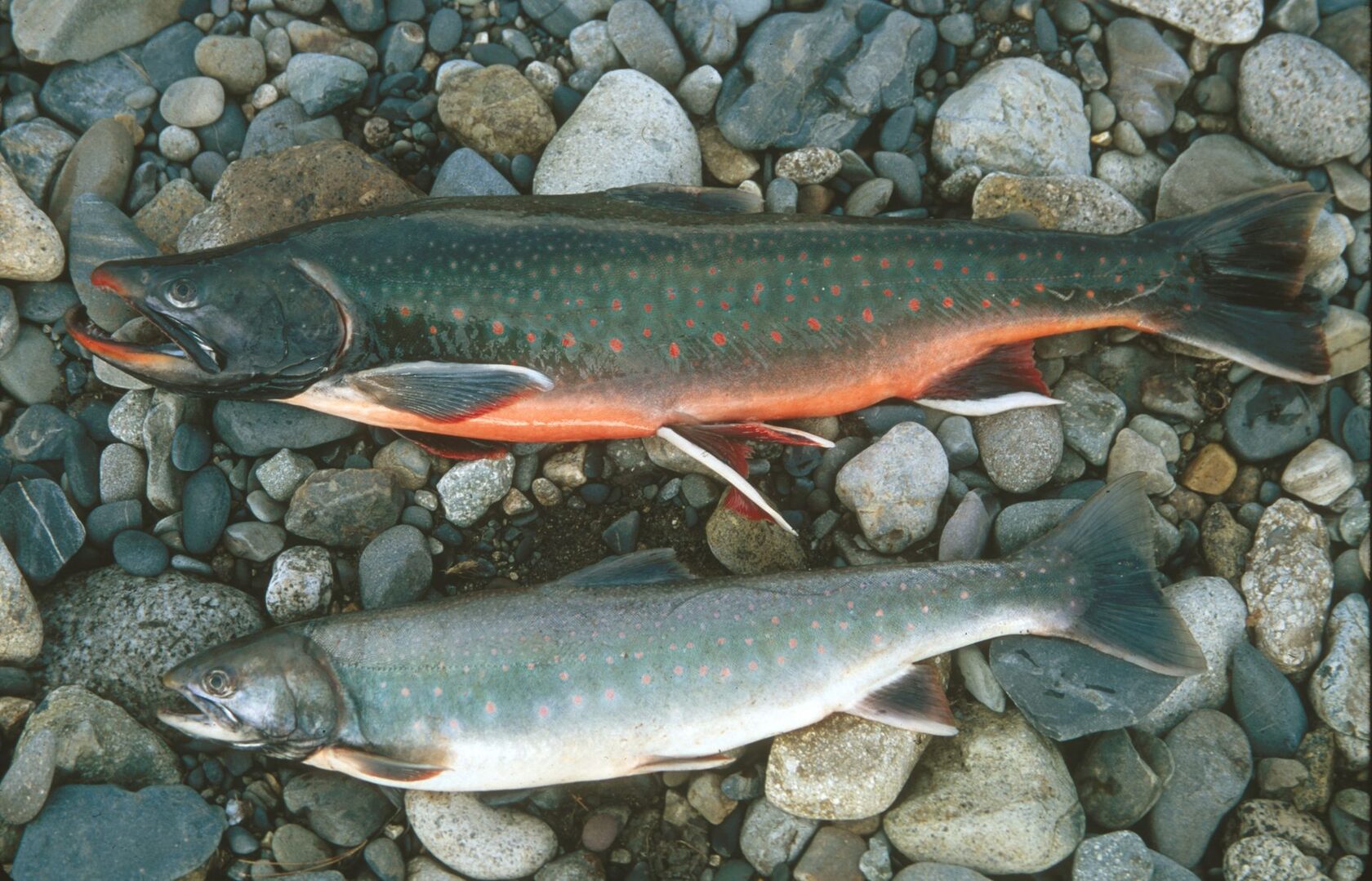 Относительно средний голец с прогонистым, уплощенным телом, удлиненным рылом, большим конечным ртом и острыми зубами. У рыб, идущих из моря, голова сверху и спина темно-синие, бока голубоватые, брюхо серебристо-белое. На спине и боках многочисленные мелкие круглые пятнышки белого или светло-желтого цвета. В период нереста рыбы обоих полов становится очень яркими, но у самцов сильнее изменяются пропорции головы и туловища. На нижней челюсти вырастает большой крюк, входящий в глубокую выемку на конце рыла; спина перед спинным плавником становится горбатой. Губы оранжевые или красные, ротовая полость интенсивно черная; бока зеленовато-голубые, брюхо красное. Пятна на теле ярко-красные с тонким синим ободком.