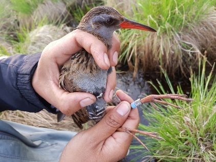 Сходные со сверчками гнездовые биотопы занимает восточный водяной пастушок — представитель семейства пастушковых (Rallidae) отряда журавлеобразных (Gruiformes). Это околоводная птица массой примерно 180 г, гнездящаяся на заболоченных территориях с осоковыми кочкарниками. Исключительно скрытна, в случае опасности незамедлительно прячется в зарослях осоки или тростника. Гнезда устраивает в осоковых кочкарниках; в полной кладке 11−13 яиц светлой окраски. В течение суток после вылупления птенцы покидают гнездо. Несмотря на высокую плотность гнездования, многие вопросы биологии этого вида также требуют детального изучения, что невозможно без отлова и индивидуального мечения птиц. Специальных методик или способов поимки пастушков ранее не существовало. Благодаря проведенным исследованиям, были успешно разработаны и апробированы различные методы отлова этих птиц.