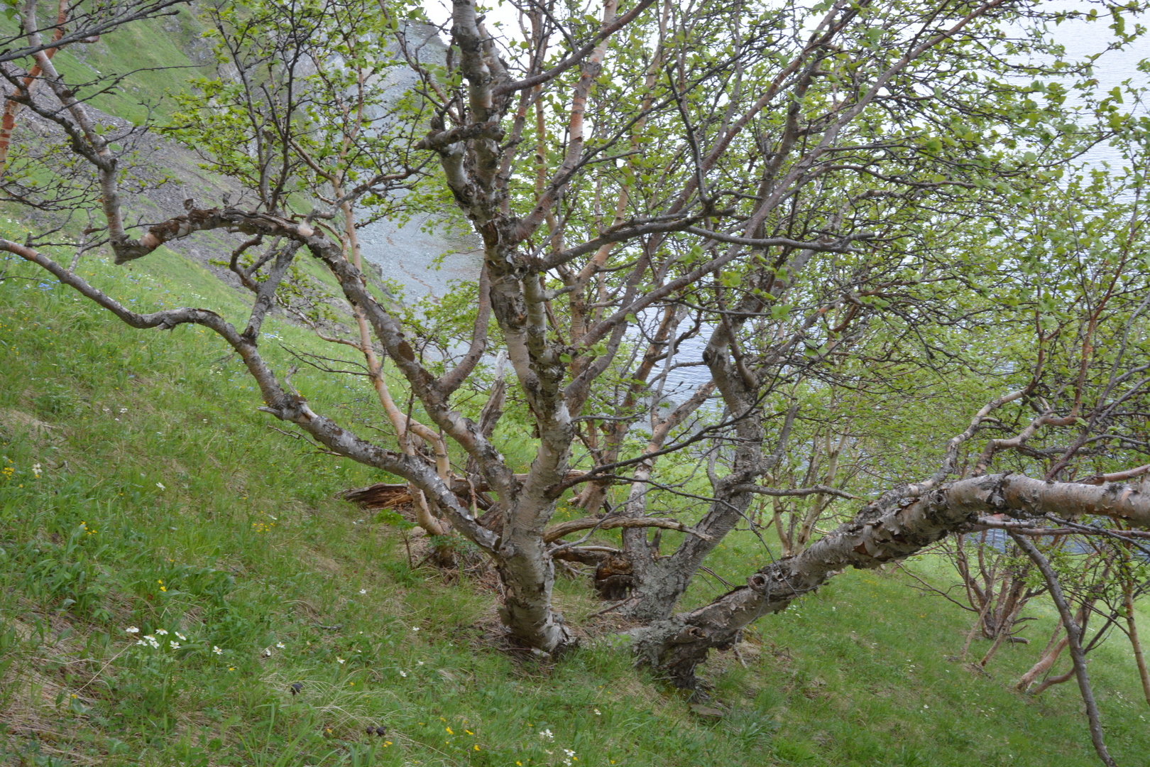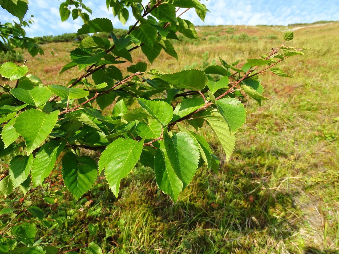 Описание. Дерево до 20 м высотой, в Магаданской области вырастает не выше 10–15 м. Ствол обычно изогнутый. Каменноберезняки часто называют «пьяным лесом» – издалека деревья кажутся застывшими в причудливом танце. Кора розовато-кремово-серая, отслаивается крупными неровными лохмотьями; старые стволы покрыты отслоившимися пластами коры. Ветви красновато-коричневые с темными чечевичками, корявые. Листья яйцевидные с острой верхушкой, двоякозубчатые, сверху голые, снизу часто опушены. Крылья орешков березы шерстистой в 1,5–3 раза уже орешка. Сережки вверх торчащие, 2–4 см длиной, овальные или яйцевидные. Однодомное (мужские и женские цветки на одном растении), цветение в июне, семена созревают в августе. Возобновляется семенами и порослью от свежих пней.