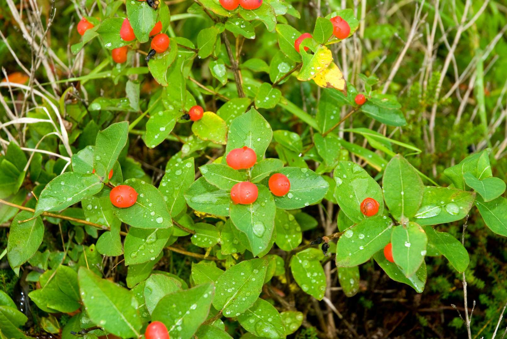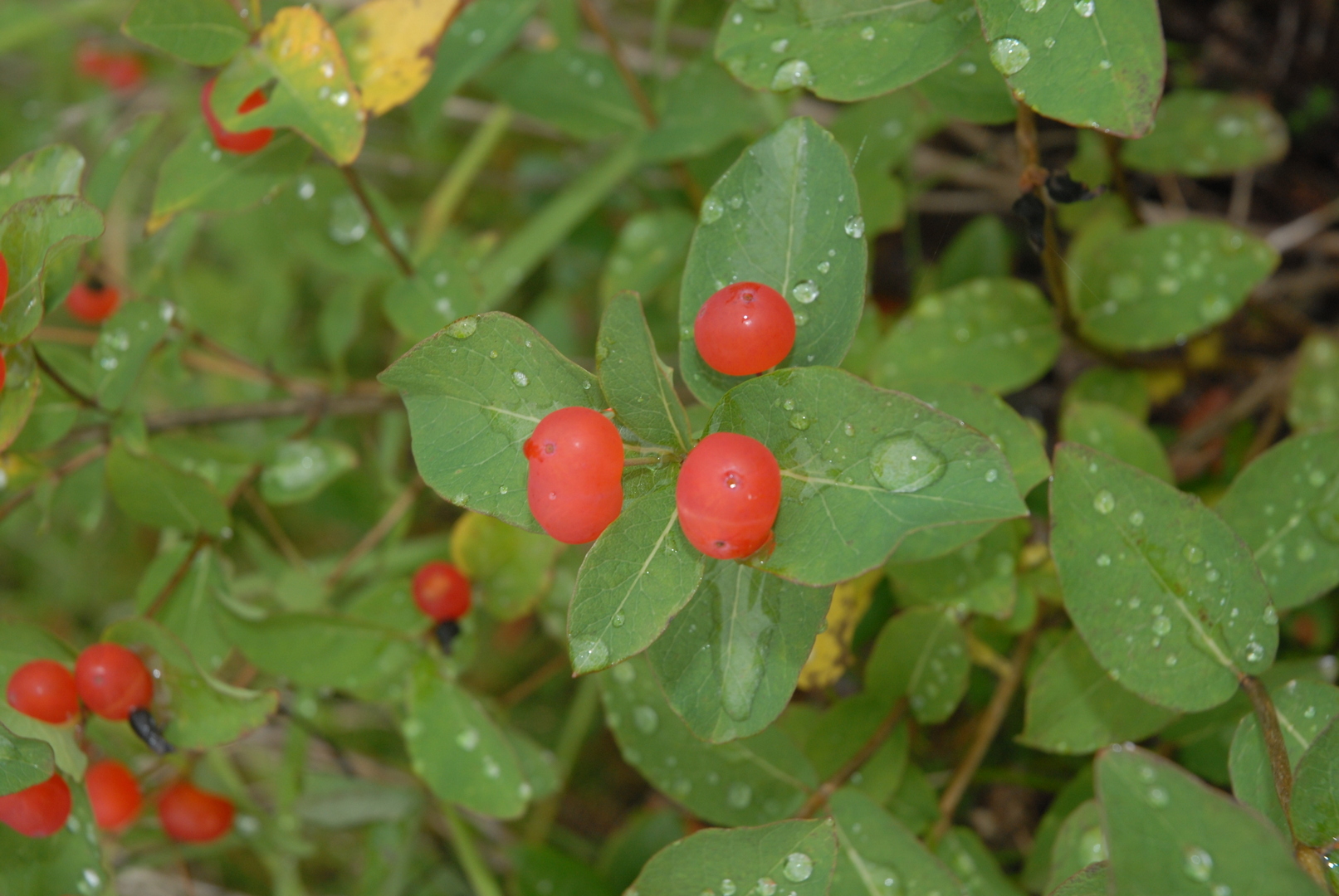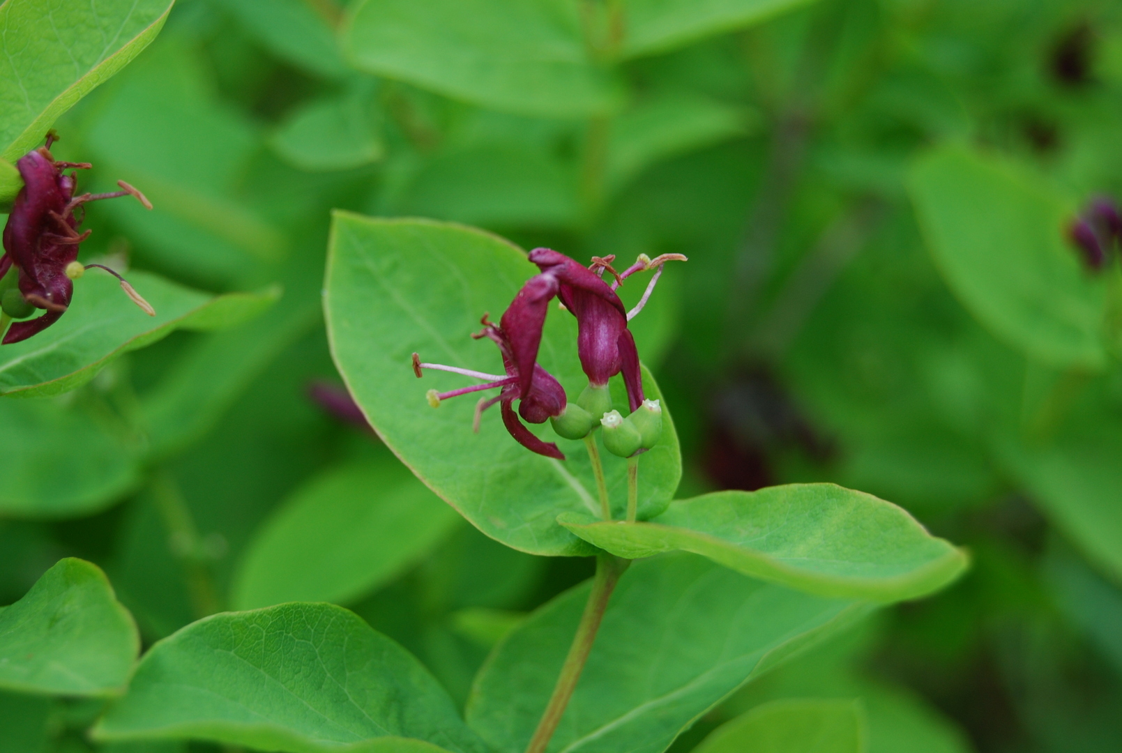 Описание. Куст до 1 м высотой. Ветви светло-серые, молодые побеги желтоватые. Листовые пластинки эллиптические, реже — яйцевидные или обратнояйцевидные, на верхушке притупленные или округло-притупленные длиной 3-4 см и шириной 2-3 см, с обеих сторон совершенно голые. Черешки короткие, длиной до 1,5 мм. Соцветия располагаются в пазухах верхних пар листьев. Цветоносы длиной 10−15 мм. Венчик двугубый пурпурно-фиолетовый длиной 9-12 мм. Плоды полностью попарно срастаются в почти шаровидные синкарпии, красные с сизым восковым налетом. Плоды несъедобные.