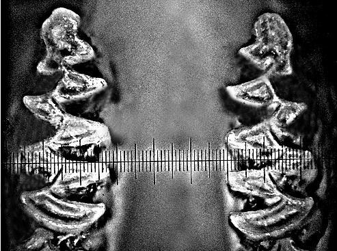 Так выглядит рисунок эмалевых петель, о которых шла речь выше. На фото рисунок первого коренного зуба нижней челюсти типового экземпляра шантарской полёвки