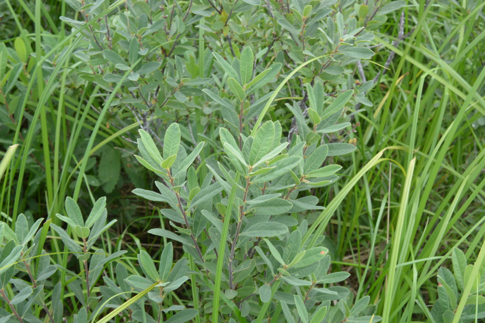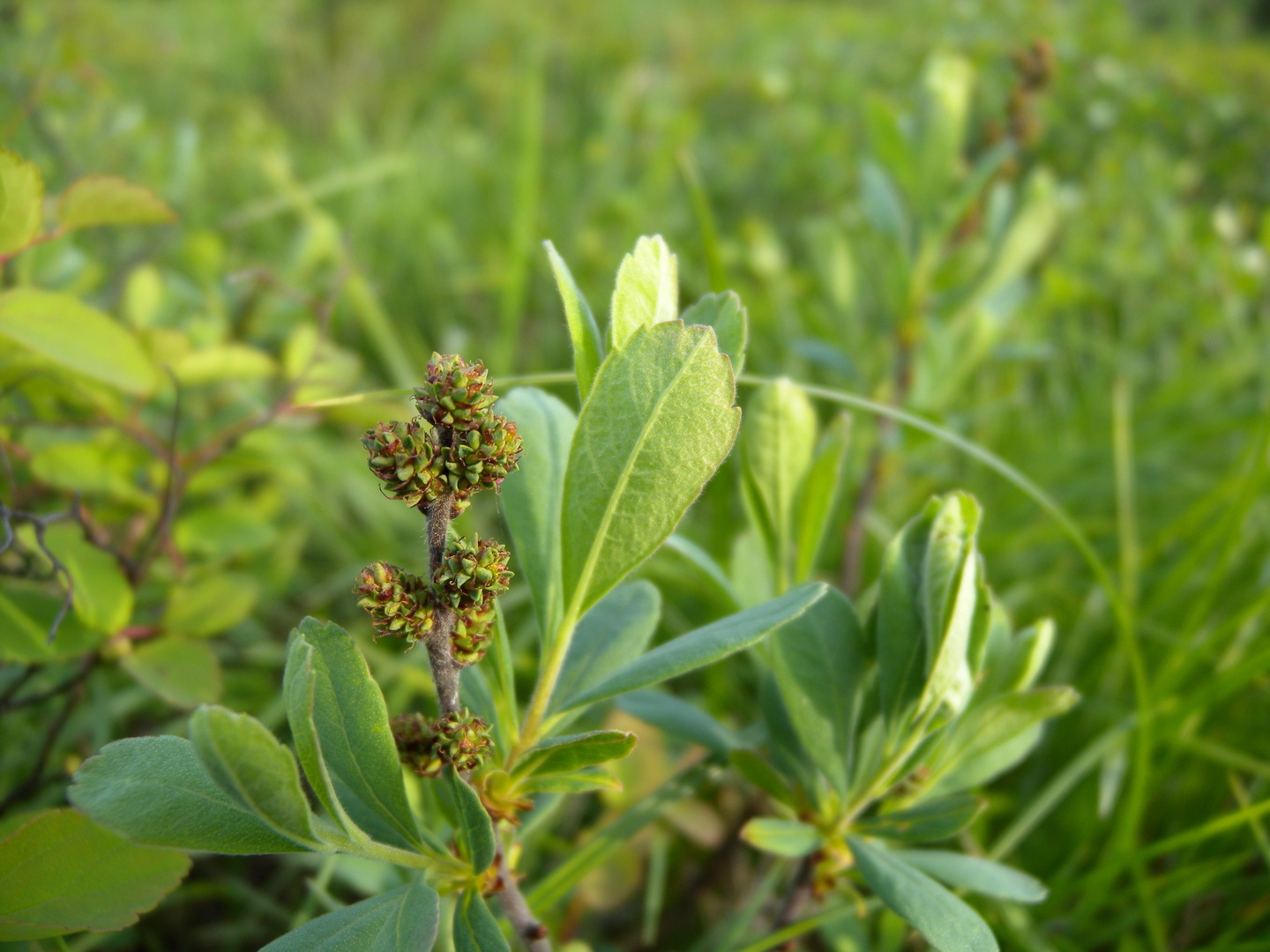 Описание. Листопадный двудомный кустарник высотой до 1,5 м, ветвистый с темно-серой корой. Ветви темно-серые, молодые побеги железисто-опушенные. Листья очередные продолговато-обратнояйцевидные длиной до 5,5 см и шириной 1,5 см, на верхушке часто с немногочисленными зубцами, закрученные, опушенные (на нижней стороне к простым волоскам примешиваются и железистые). Цветки без околоцветника, собраны в пыльниковые и пестичные сережки, расположенные на верхушках побегов. Мужские сережки длиной до 1,2 см сидячие с бурыми светло-окаймленными железисто опушенными чешуями, в пазухах которых находится по 4 сросшихся основаниями тычинки. Женские сережки немногочисленные, длиной до 0,5 см (при плодах до 1,5 см), с нитевидными пурпурными рыльцами. Плод – сухая костянка. Светолюбива, незасухоустойчива.