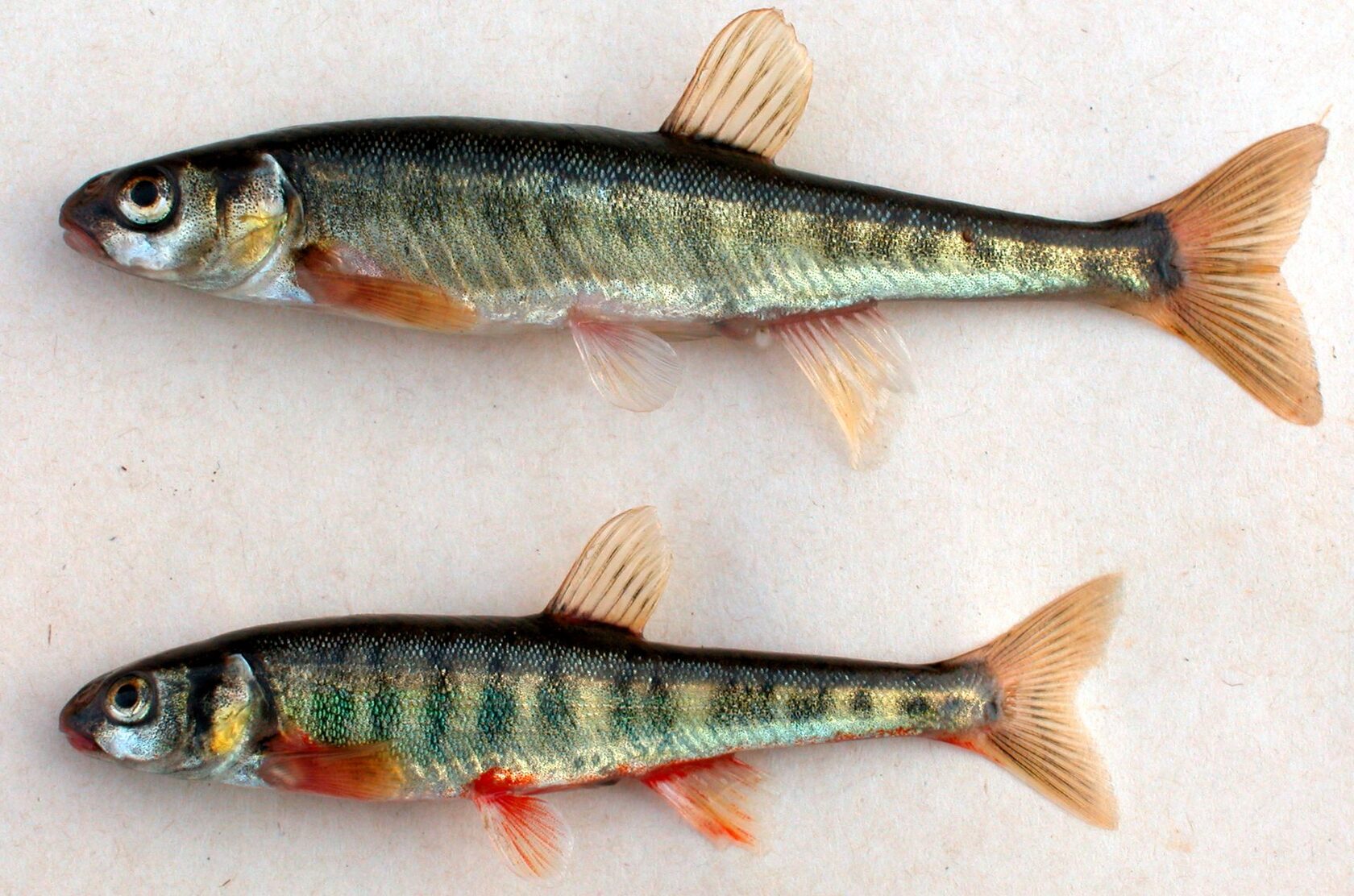 Массовая стайная мелкая рыбка (длина 8−9 см). Тело удлиненное, веретенообразное. По бокам большие темные пятна неопределенных очертаний, которые иногда могут сливаться в продольную полосу. Во время нереста имеет яркую окраску, причем самцы ярче самок.
