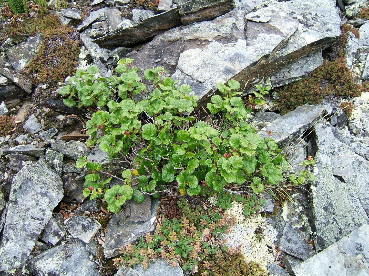 Описание. Распростертый кустарник высотой до 60 см. Все растение липкое от усеивающих его железок. Однолетние побеги желтовато-коричневые или бурые, многолетние – темно-серые. Листья длиной до 6 см, шириной до 8 см кожистые, плотные, голые, блестящие, густо покрыты железками, сверху темно-зеленые, снизу светло-зеленые с выступающими жилками. Черешки до 5 см длиной. Цветы обоеполые диаметром до 5 мм с белыми лепестками собраны в соцветие-кисть. Ягоды от зеленых до темно-коричневых, почти черных, с сильным терпким ароматом.