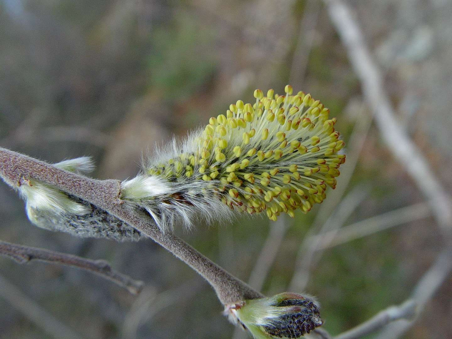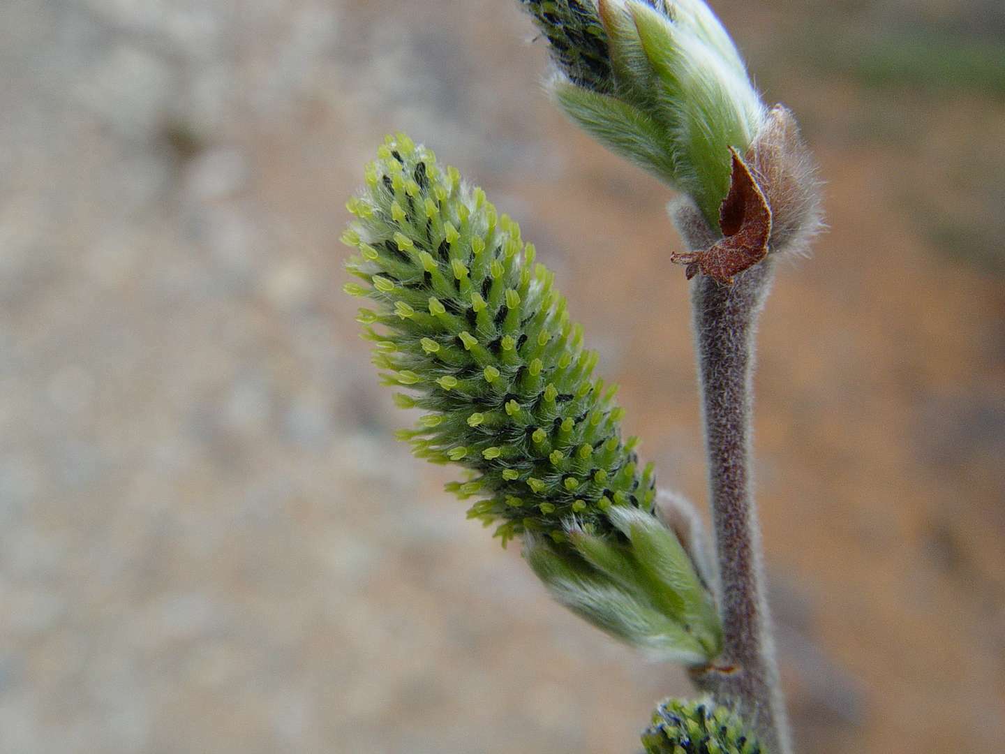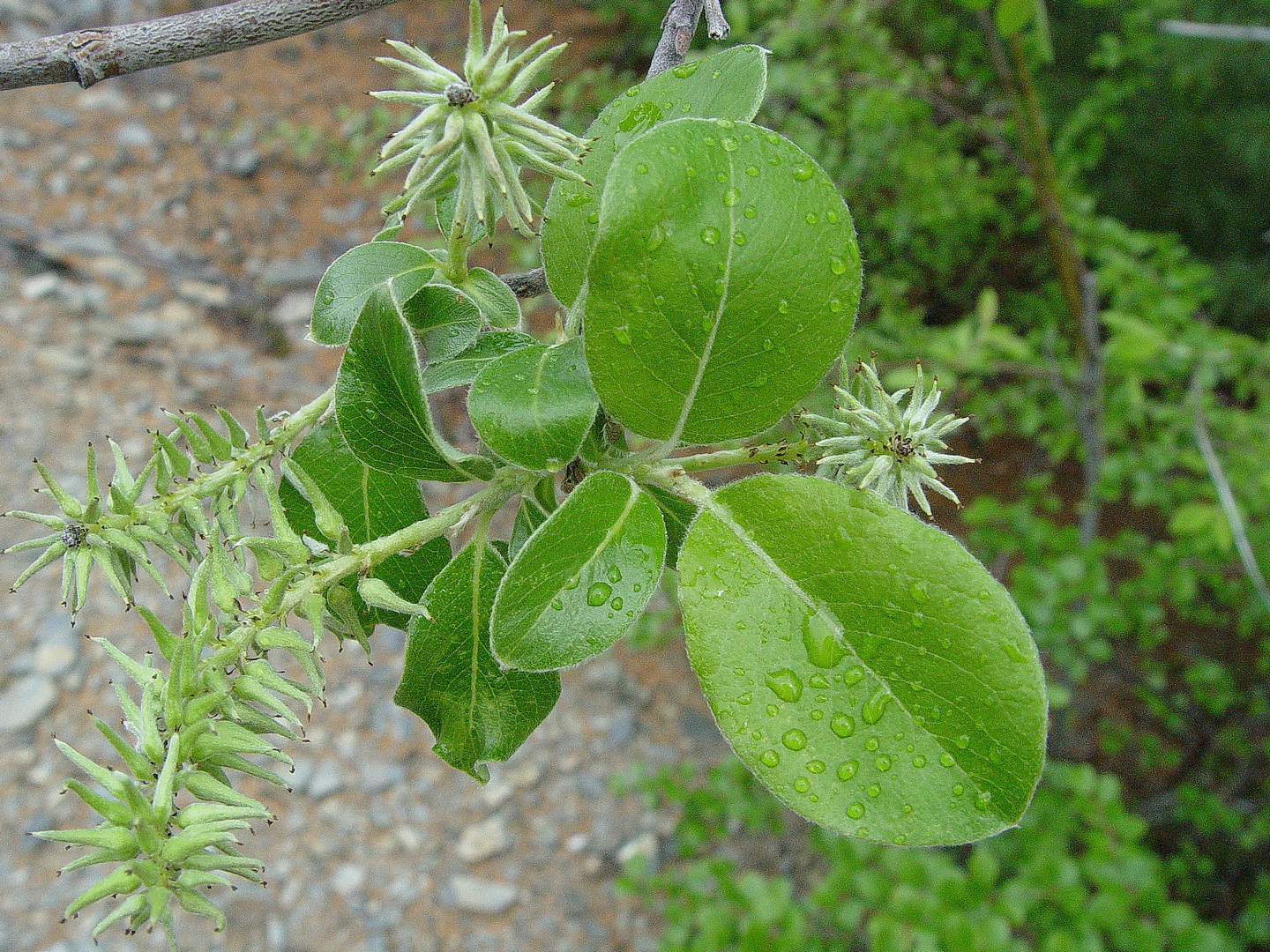 Описание. Дерево с тонким стволом высотой до 6 м, или высокий кустарник с рыжеватыми или желто-бурыми опушенными ветвями. Почки диморфные. Цветочные почки длиной до 9 мм светло-коричневые с более-менее отогнутым носиком. Молодые побеги густо опушены серыми или желтыми волосками. У основания листьев косояйцевидные зубчатые прилистники длиной до 10 мм, обычно рано опадающие. Листья очередные длиной до 8 см, обратнояйцевидные с заостренным концом, толстые, плотные, сверху почти голые или слабо опушены, снизу серовойлочные, реже слабоопушенные, от цельнокрайных до неравномерно пильчатых. Сережки сидячие, короткие, коробочки на коротких ножках плотно прилегают друг к другу, так что зрелая сережка смотрится густой. Цветет в середине мая, плодоносит в конце июня. Мужские и женские сережки на разных растениях. Размножается семенами и черенками.