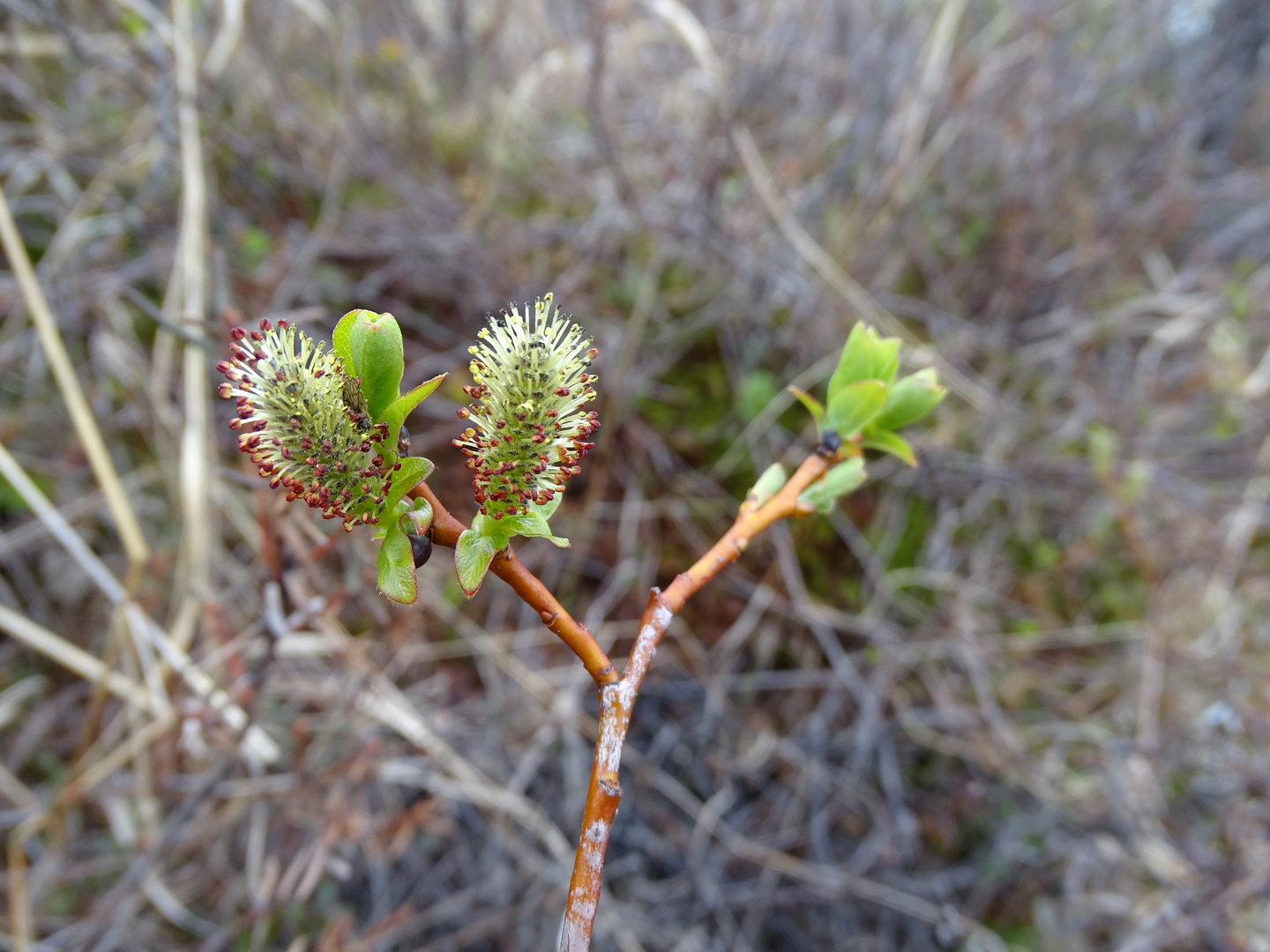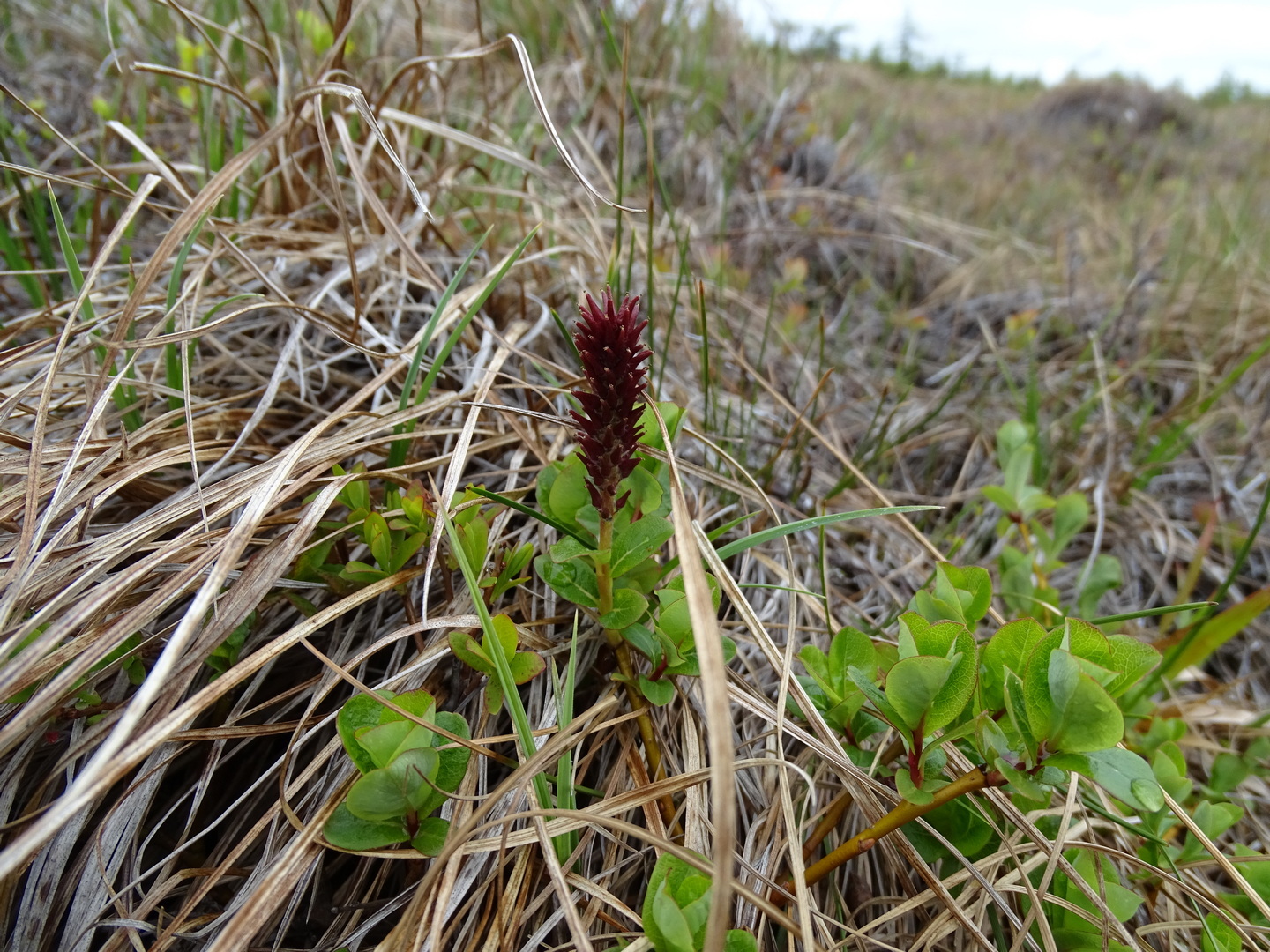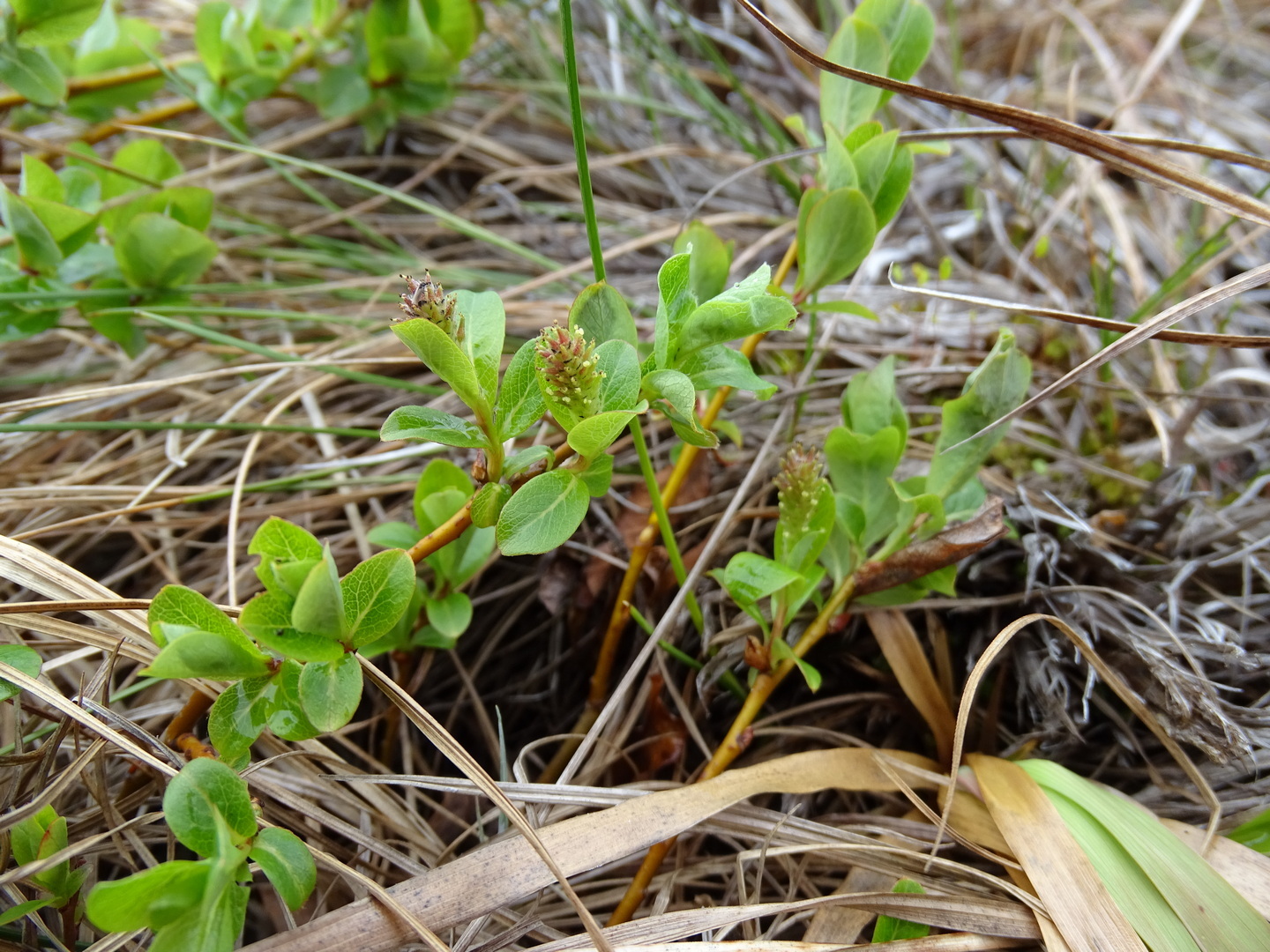 Описание. Куст высотой до 0,5 м с косо приподнимающимися и укореняющимися стволиками. Ветви серо- или темно-бурые, блестящие, голые. Побеги пурпурно-каштановые, блестящие голые или слабо опушенные. Почки длиной до 9 мм, буро-каштановые, тупояйцевидные, блестящие, голые. Листовые пластинки длиной 1−3 см, шириной 1−2 см обратнояйцевидные или обратнояйцевидно-лопатчатые, тупые или закругленные, в основании клиновидные, в верхней части цельнокрайные, в нижней — железисто-городчатые или железисто-пильчатые, довольно плотные, голые или почти голые, сверху темно-зеленые, глянцевитые, снизу сизо-зеленые или сизые с выступающей сетью жилок. Мужские сережки 0,5−2 см длиной, густые с опушенной осью и с чешуевидными листьями у основания. Женские сережки длиной 1−2,5 см с несколькими листьями у основания, рыхловатые. Плоды — коробочки, фиолетовые или красно-бурые, голые или опушенные. Зрелые семена с пучком тонких белых волосков.