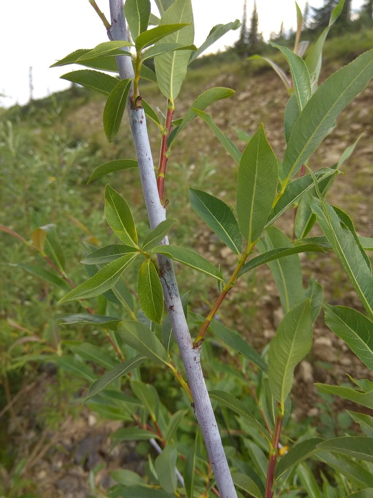 Описание. Дерево высотой 8−15 м. Ветви тонкие красно-коричневые, нередко покрыты сизым восковым налетом. Цветочные почки длиной до 18 мм обычно расположены вблизи концов ветвей и резко отличаются от мелких вегетативных. Прилистники косо-яйцевидные или почковидные, длиной до 15 мм. Листья линейные или ланцетные, заостренные, длиной до 10−12 см, по краю равномерно-железисто-пильчатые, сверху темно-зеленые блестящие, снизу сизые. Мужские сережки с желтыми пыльниками, но вся сережка смотрится желтовато-серой из-за густого опушения. Женские сережки длиной до 5 см, густые цилиндрические, нередко изогнутые, сидячие, в основании с листовидными прицветниками. Зрелые семена с пучком тонких белых волосков.