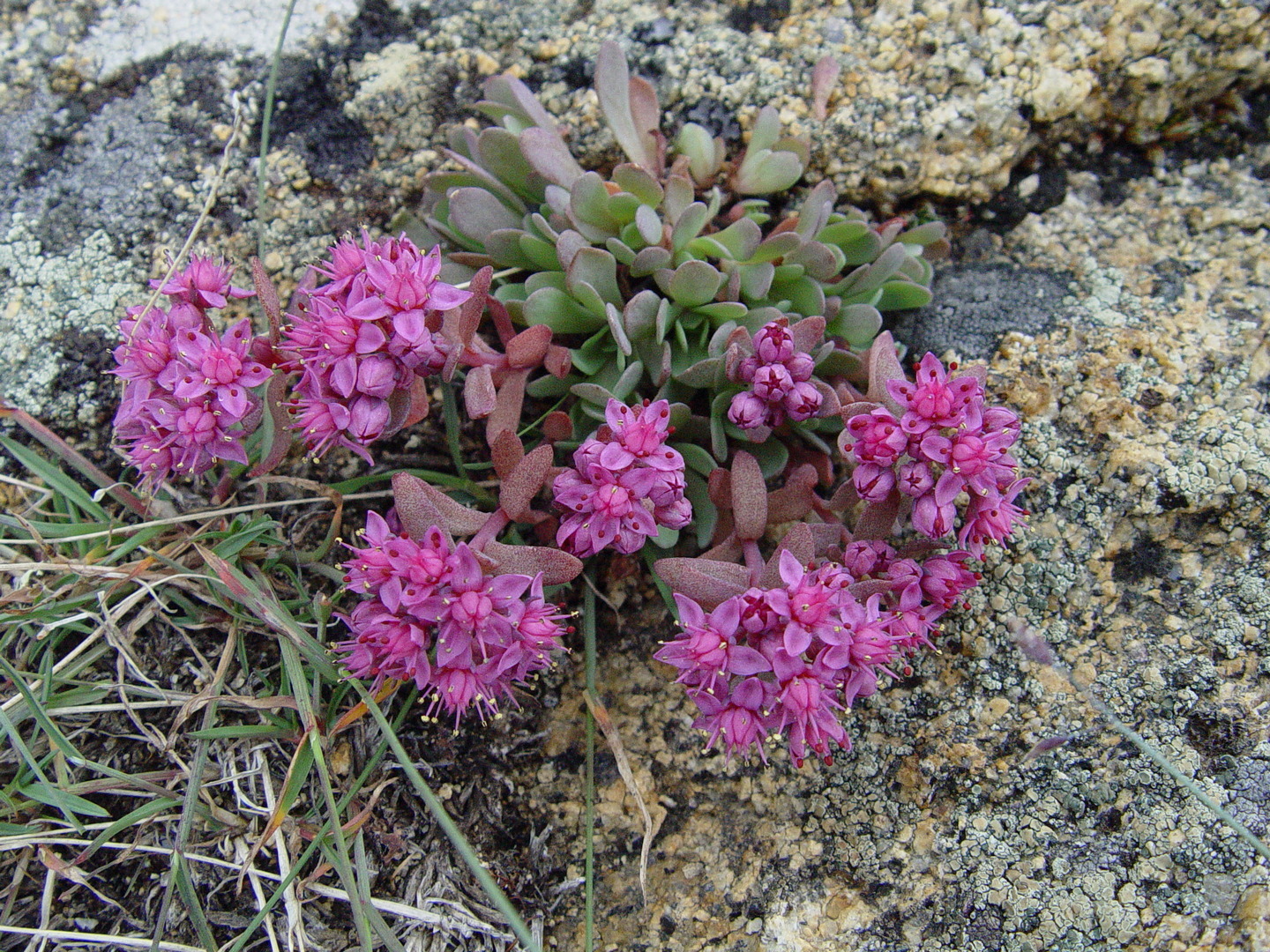Описание. Растение высотой до 8 (иногда 12) см, образующее рыхлые дерновинки. Побеги многочисленные, стелющиеся, укореняясь, формируют разветвленное корневище. Листья сидячие, очередные или сближенные, утолщенные. Соцветие в виде рыхлого щитка, цветки фиолетово-синие. Очиток синий цветет в начале июля, плодоносит в конце августа.