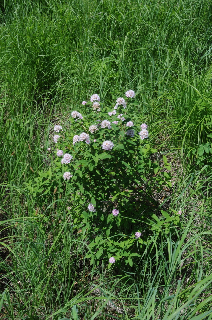 Описание. Куст высотой до 2 м с гладкими, обычно голыми светло-коричневыми прямостоячими ветвями. Листья длиной 2−10 см, шириной 1−3 см продолговато-ланцетные или продолговато-эллиптические, острые, к основанию клиновидно суженные в короткий черешок, почти от основания пильчатые, голые или снизу по главной жилке пушистые. Соцветия — пирамидально- или овально-цилиндрическая метелка длиной 5−12 см. Оси соцветия, цветоножки и чашечка обычно опушены редковатыми бесцветными волосками, реже голые. Цветки розовые диаметром 8−12 мм. Лепестки округлые, вдвое короче тычинок. Плоды-листовки гладкие, коричневые.