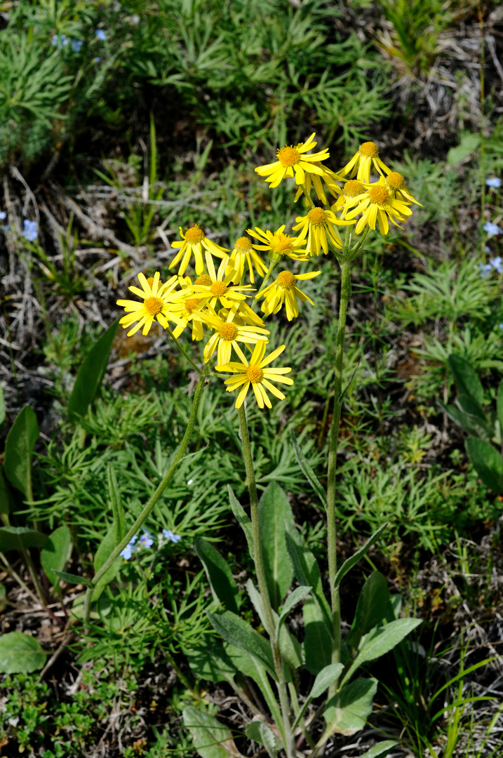 Описание. Растение высотой 20−40 см с жесткими одиночными стеблями и сероватыми шероховатыми листьями. Соцветие из 5−7 крупных корзинок, краевые цветки оранжево-желтые, цветки диска оранжевые. Пепельник цветет в середине июня, плодоносит в июле.