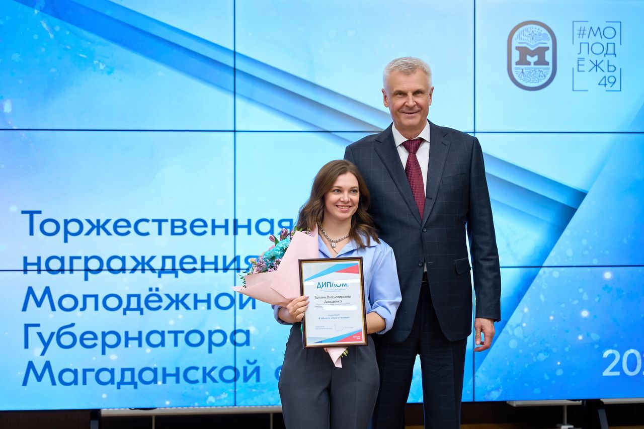 11 декабря 2025 года в культурно-общественном центре «Премьер» состоялось торжественное награждение лауреатов Молодежной премии Губернатора Магаданской области. Среди 19 молодых специалистов удостоена премии в номинации «В области науки и техники» — младший научный сотрудник лаборатории экологии гельминтов ИБПС ДВО РАН Татьяна Владимировна Давыденко. Губернатор поблагодарил победителей за неиссякаемую энергию и труд и вручил им дипломы.