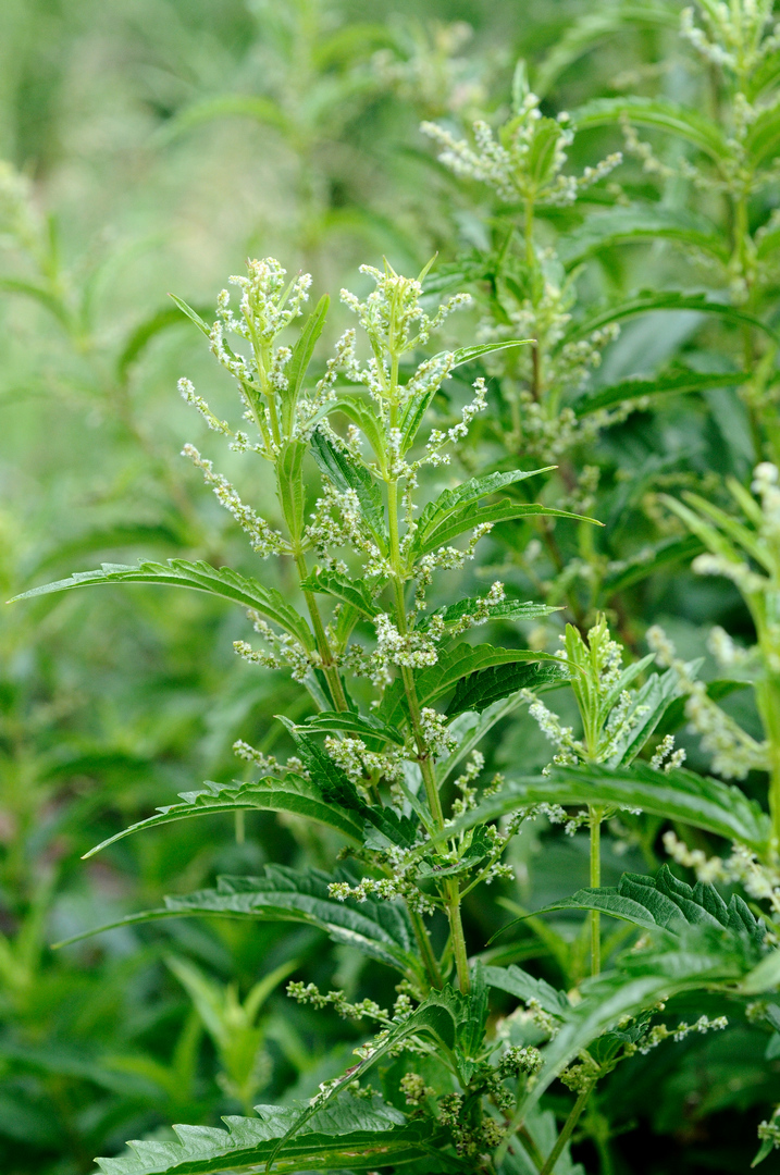 Описание. Хорошо известное растение высотой до 2 м. Листья продолговато-яйцевидные, с округлым или клиновидным основанием, с обеих сторон голые или более-менее опушенные простыми волосками, умеренно жгучие. Соцветия расположены в пазухах листьев. Цветет в июле, плодоносит в августе. Размножается разрастанием корневища, быстро захватывает свободные участки с плодородной почвой.