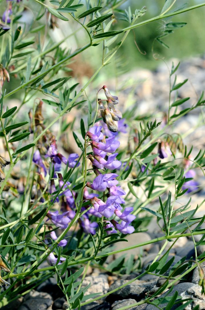 Описание. Растение высотой до 35 (иногда до 50) см. Корневища тонкие, ползучие. Стебли многочисленные, тонкие, приподнимающиеся, или жесткие, прямостоячие, иногда почти простертые; листья сложные, состоят из 4−7 пар серовато-зеленых опушенных листочков длиной 8−20 мм и шириной 2−6 мм. Цветочные кисти рыхлые из 5−10 ярко-фиолетовых цветков. Бобы продолговато-ромбические, коричневые, голые. Семена темно-коричневые. Цветет в конце июня, плодоносит в начале августа.